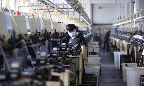 A worker is busy with producing and packaging zippers at a zipper manufacturer in Yiwu, East China's Zhejiang Province, the country's manufacturing hub. Photo: Yang Hui/GT