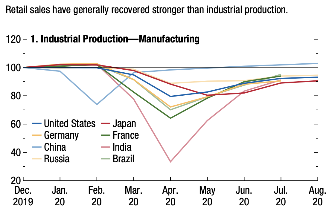 The IMF forecast a 2020 global contraction of 4.4 percent, an improvement over a 5.2 percent contraction predicted in June, when business closures reached their peak. But it is still the worst economic crisis since the 1930s Great Depression.
